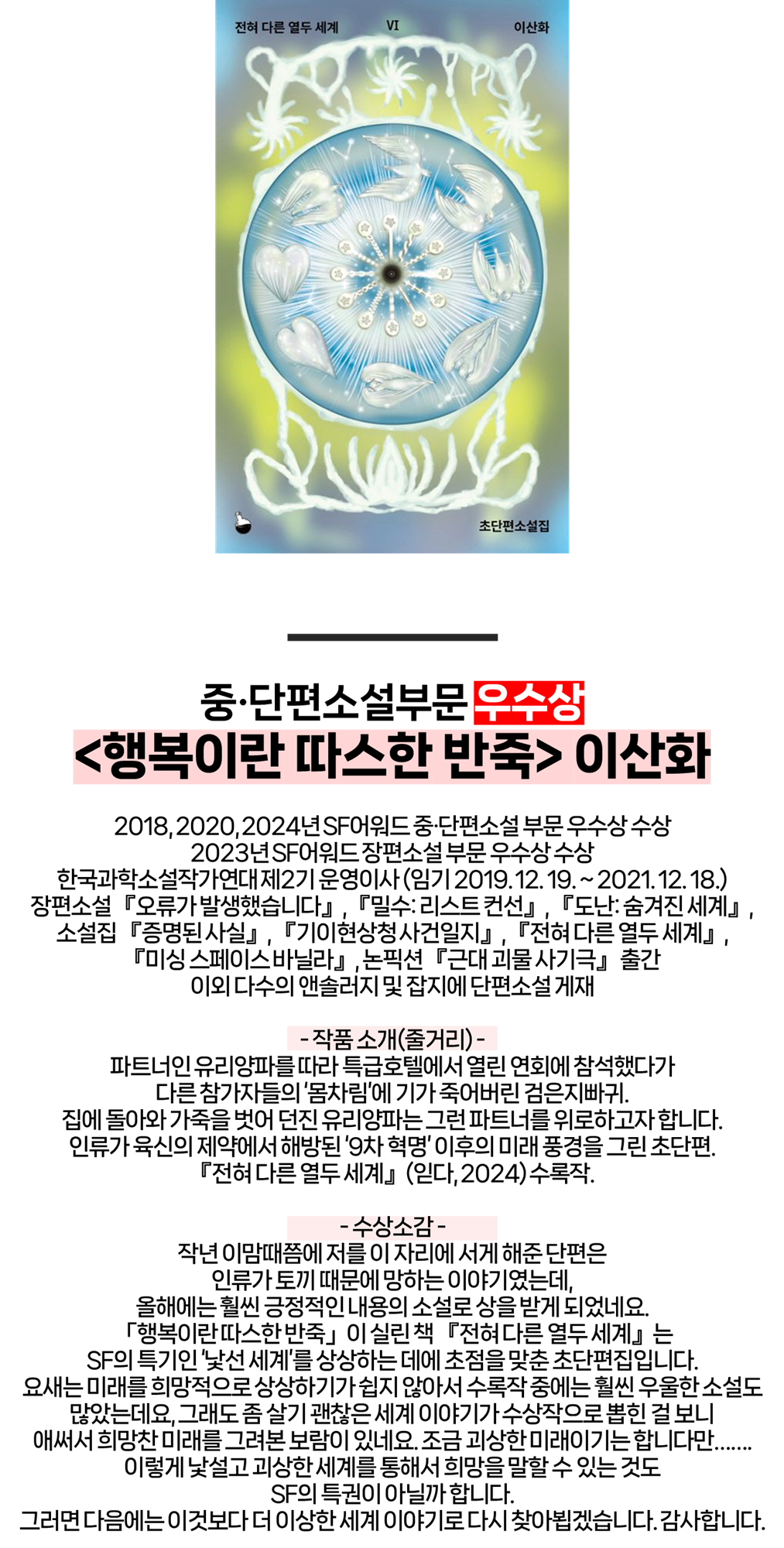 | 「제12회 SF어워드」 장편소설부문 수상작 및 심사평 (2) | 2025.10.18 |