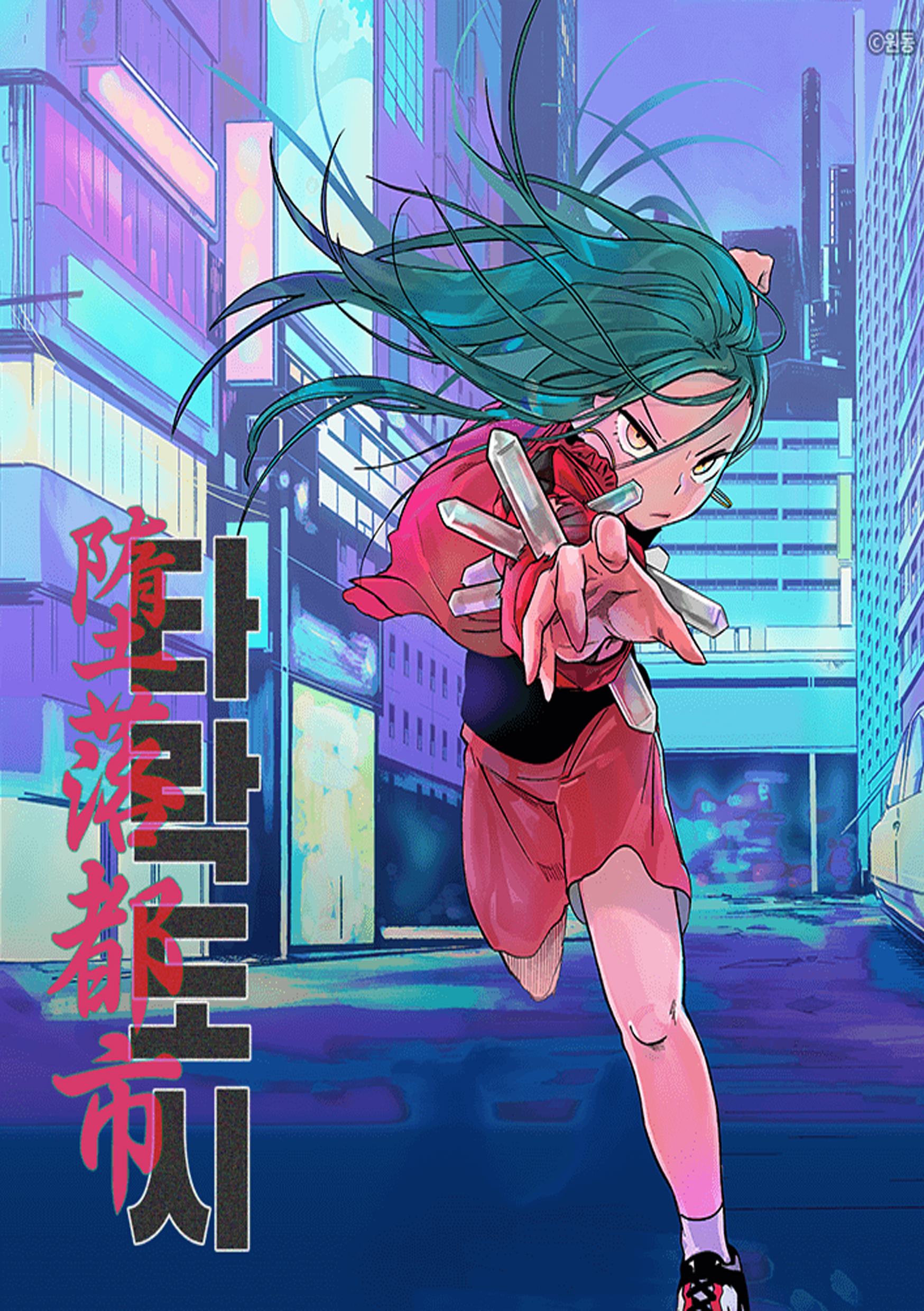 원동 작가님의 <타락도시>는 카카오웹툰에서 연재되고 있는 씨티팝 스타일의 사이버펑크물입니다. 구시대의 잔재인 파츠를 몸에 심어 살상무기로 개조된 어린아이들이 자신의 삶을 살기 위한 모험을 떠나며 멸망 직전의 타락한 도시에 변화가 찾아옵니다. 어찌 보면, 멸망 직전의 도시가 아니라 이미 멸망한 이후인지도 모르겠습니다. 인간성이란 가치가 모두 훼손되어 잔인한 각자도생의 세계가 되어 버렸으니까요. 그 안에서 인간성을 배우고 성장해가는 주인공은 복수심을 동력으로 삼아 점차 성장해갑니다. 1980-90년대를 강타한 사이버펑크 장르의 플롯과 작화 스타일을 차용하면서도 웹툰의 빠른 이야기 전개가 맞물려 레트로, 사이다, 성장의 키워드를 모두 담아낸 작품입니다. 이 작품을 읽은 것은 2023년에 가장 잘 한 일 중 하나입니다.